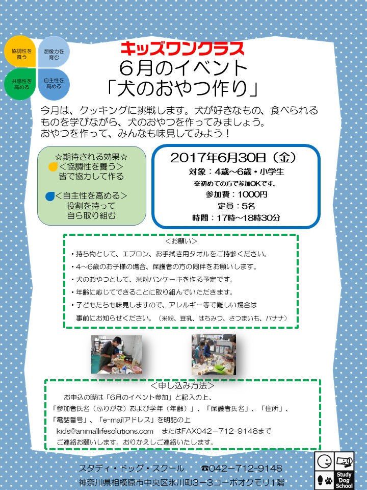 犬との交流も、犬の気持ちを想像しながら、目に見えない能力や気持ちを感じながら付き合っていきます。犬との交流は、想像力を育むだけでなく、犬をきっかけにした工作、クッキング、ゲーム